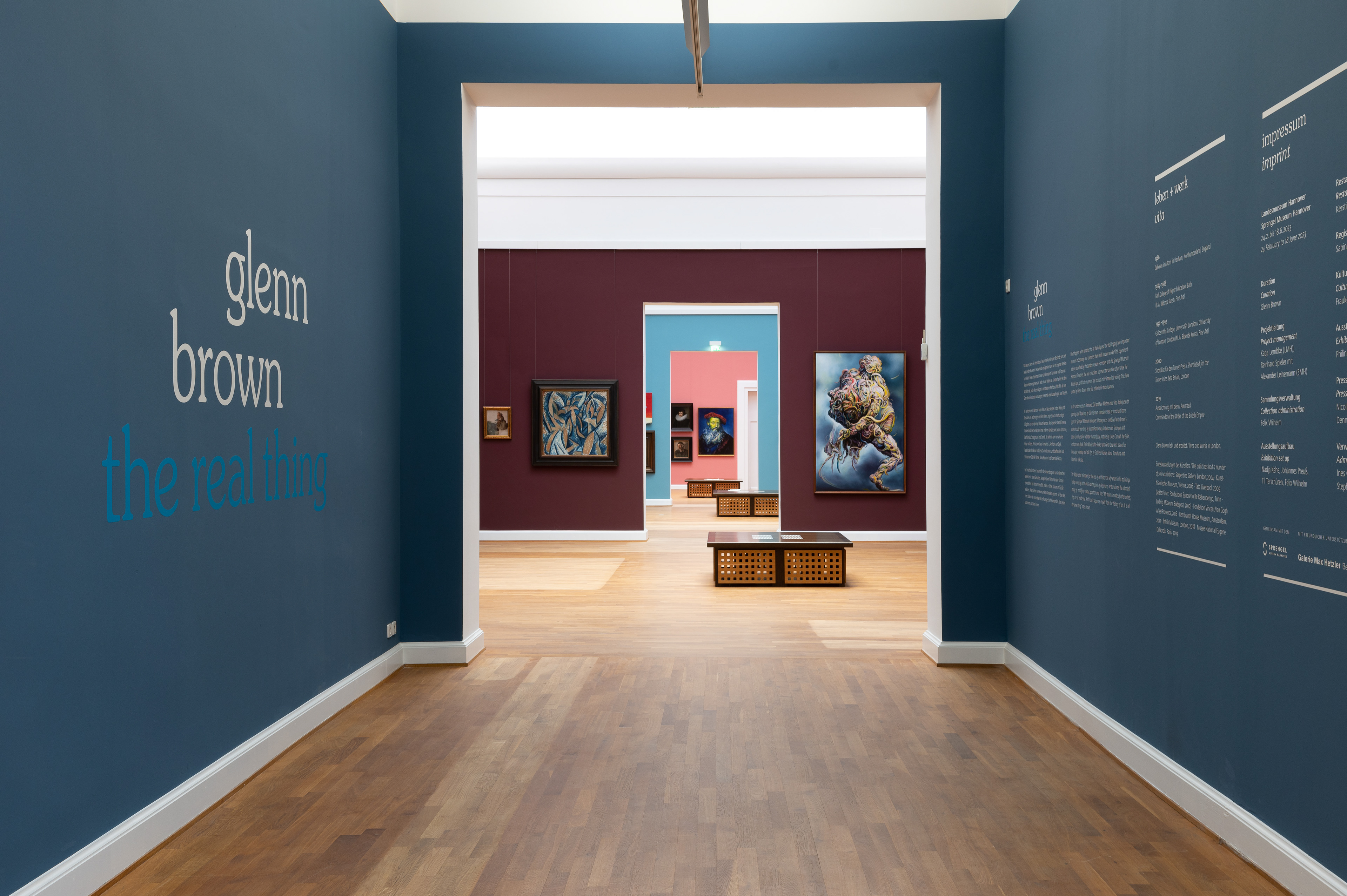 Raumfoto mit Wandschriften: Herling/Herling/Werner © Sprengel Museum Hannover. Werke an den Wänden (v. l. n. r.): Rudolf Hirth du Frênes, Bauernmädchen, vor 1876, Öl auf Papier auf Leinwand, Dauerleihgabe der Landeshauptstadt Hannover / Pablo Picasso, Trois Femmes, 1908, Öl auf Leinwand, 91 × 91 cm, Leihgabe des Sprengel Museum Hannover, Schenkung Sammlung Sprengel (1969), Slg. Sprengel II, 31 / Glenn Brown, The Over-Soul, 2022, oil on panel, 193 × 122 cm, Leihgabe des Künstlers sowie im hinteren Raum: Jan van Teyn (Werkstatt), Brustbild einer älteren Frau, 1632, Eichenholz / Alois Erdtelt, Ein Hilfslehrer aus Wallgau, 1884, Öl auf Pappe, Dauerleihgabe der Landeshauptstadt Hannover, KM 1913, 58 / Glenn Brown, Reproduction, 2014, oil on panel, 135 × 101 cm, Leihgabe des Künstlers