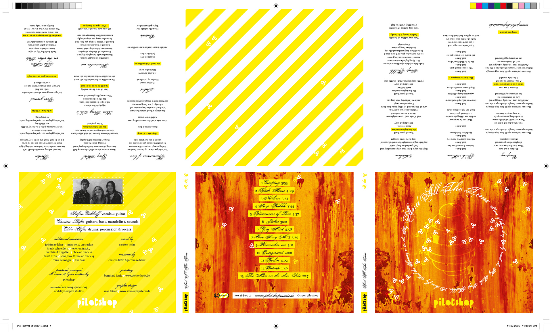 This happens to be my only album cover in 25 years of graphic design. One day I should go back to making music visible. Just a happy place. The album is 20 years old this year, congratulations, Pilotshop. Cover art, branding, poster design.