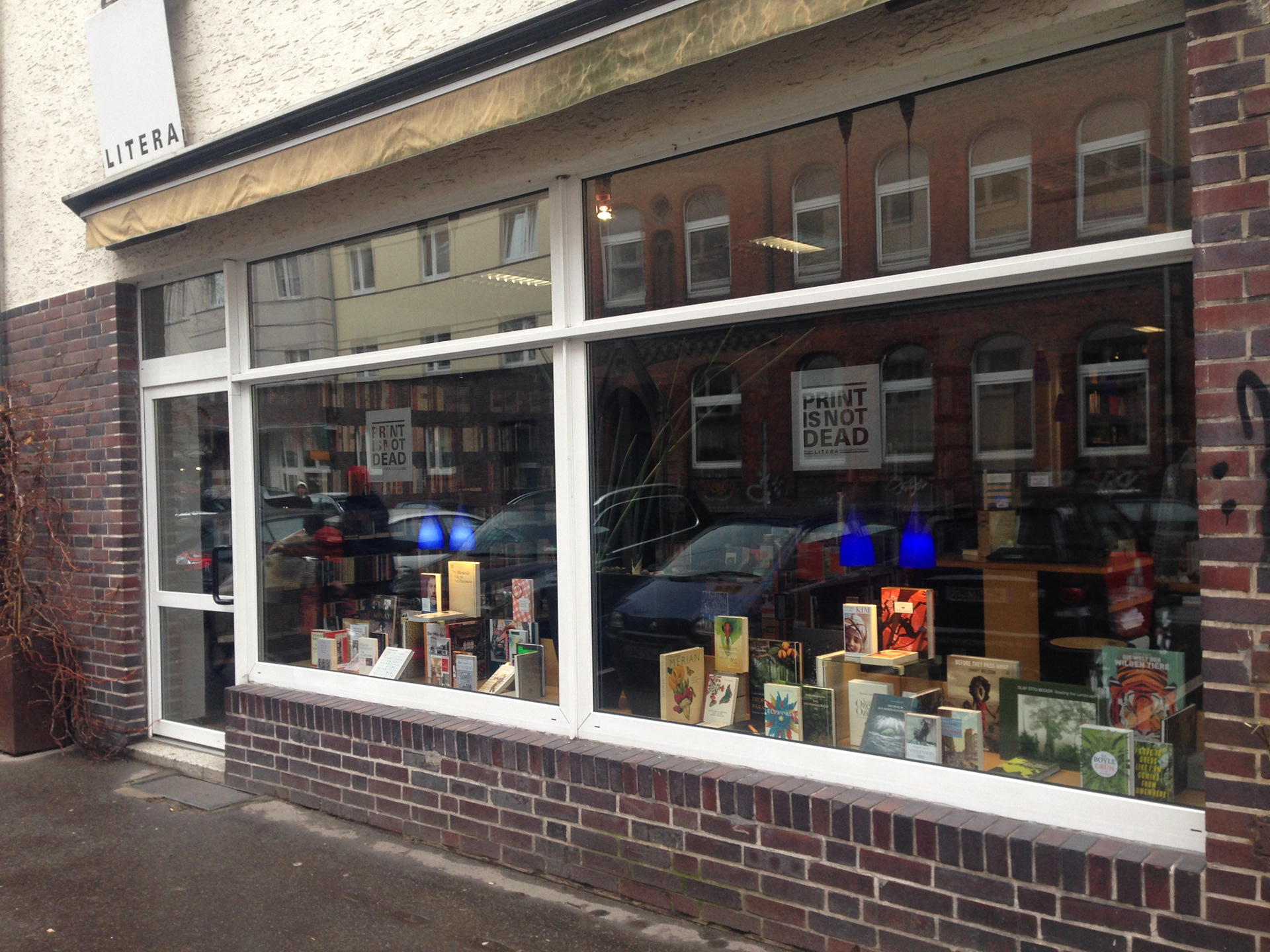 Zum 20. Jubiläum des lokalen Lieblingsbuchladens gestaltete ich ein Schriftmotiv für diverse Drucksachen wie Tüten, Taschen, Postkarten und Folienbeschriftungen.